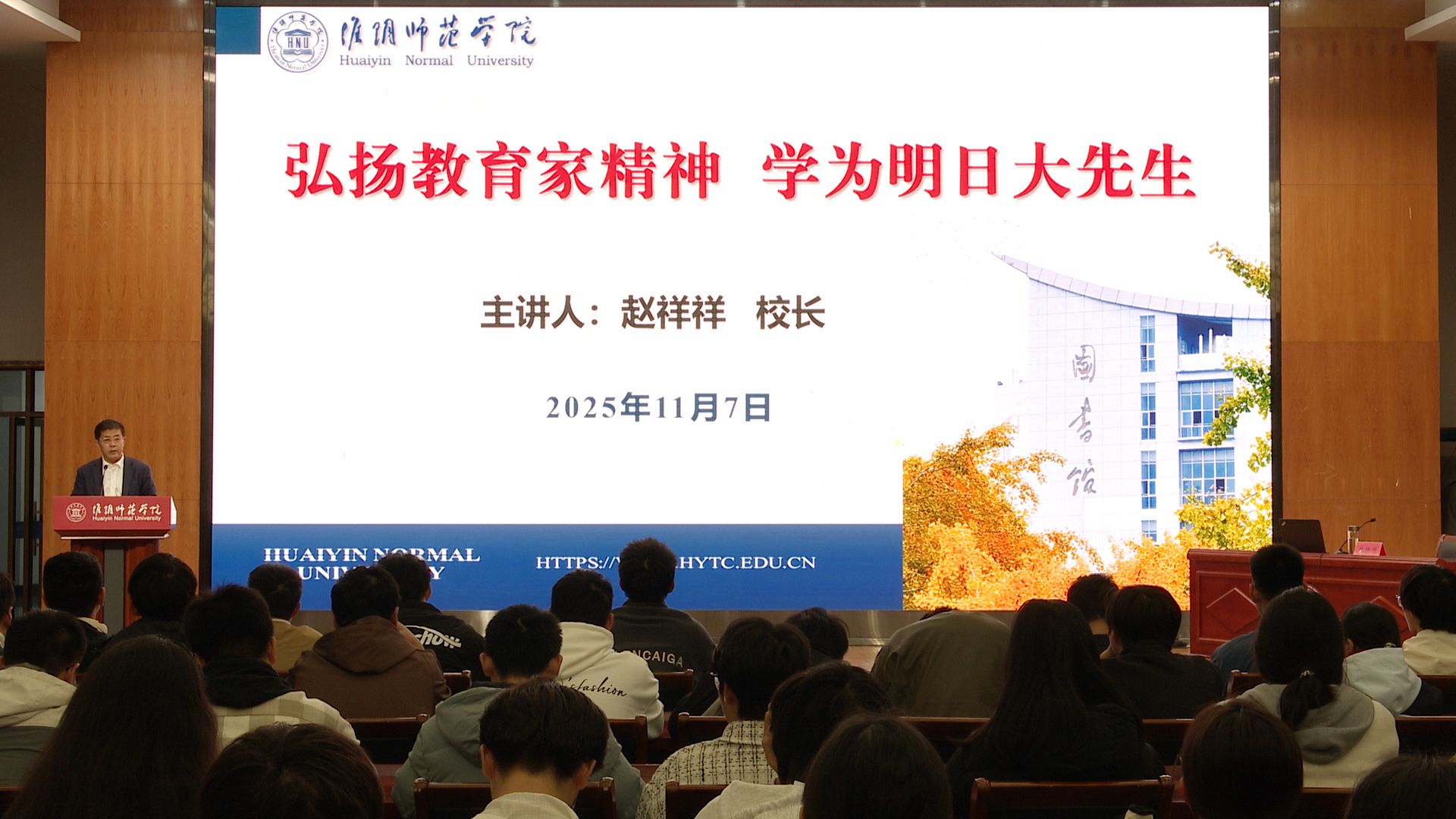赵祥祥以“弘扬教育家精神,学为明日大先生”为题讲授“师范生第一课”,全体乡村定向师范生现场听讲,其他师范生通过直播方式集体观看。赵祥祥在讲座中详细阐释了“教育家精神”的丰富内涵,为师范生进一步涵养教育情怀、锤炼教学能力、提升育人智慧指明了方向。赵祥祥提出,在新的时代背景下,广大师范生要大力弘扬教育家精神,立志成为“大先生”,更好担当起教师育人、建设教育强国的历史使命。