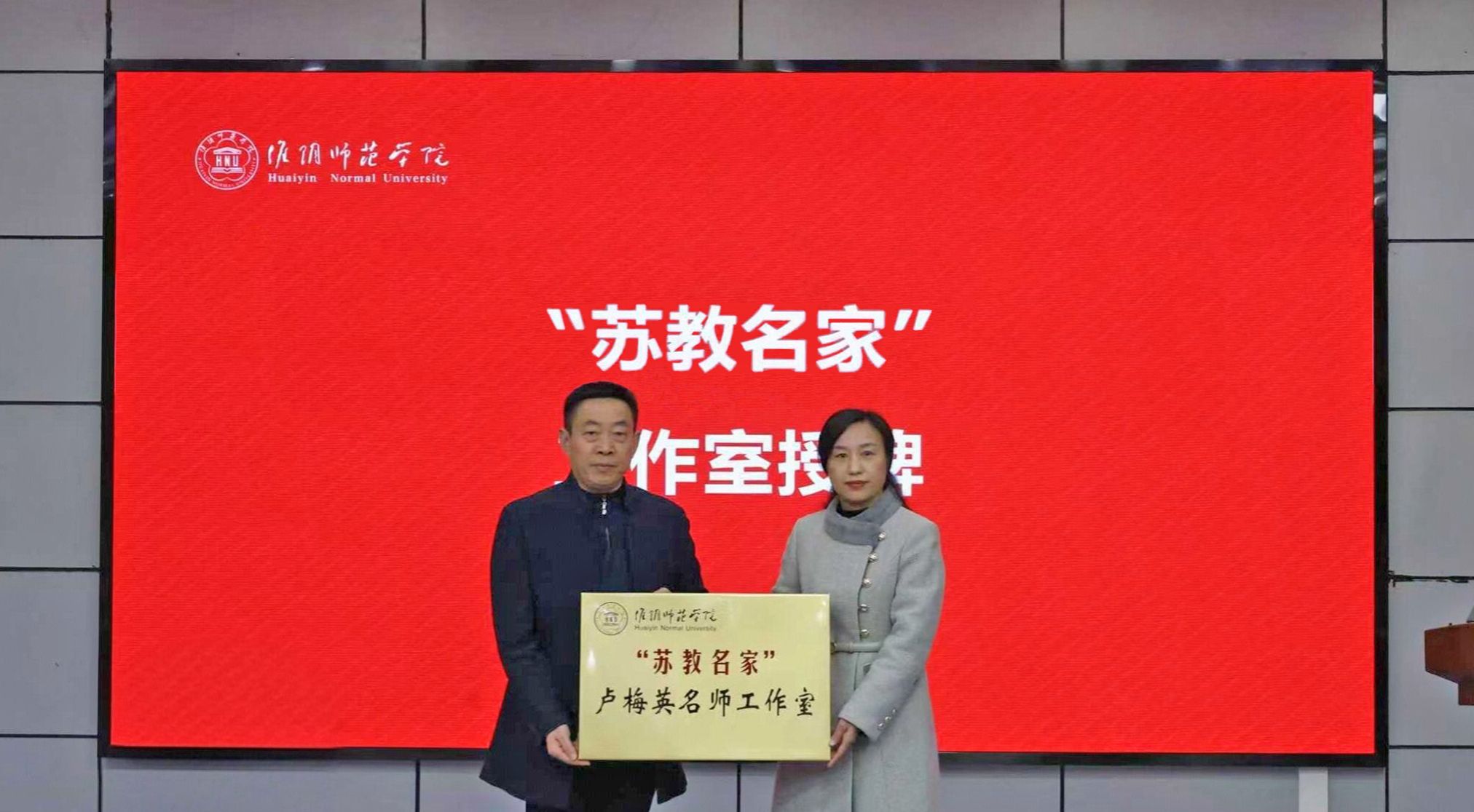 图为史晖为“苏教名家”工作室授牌