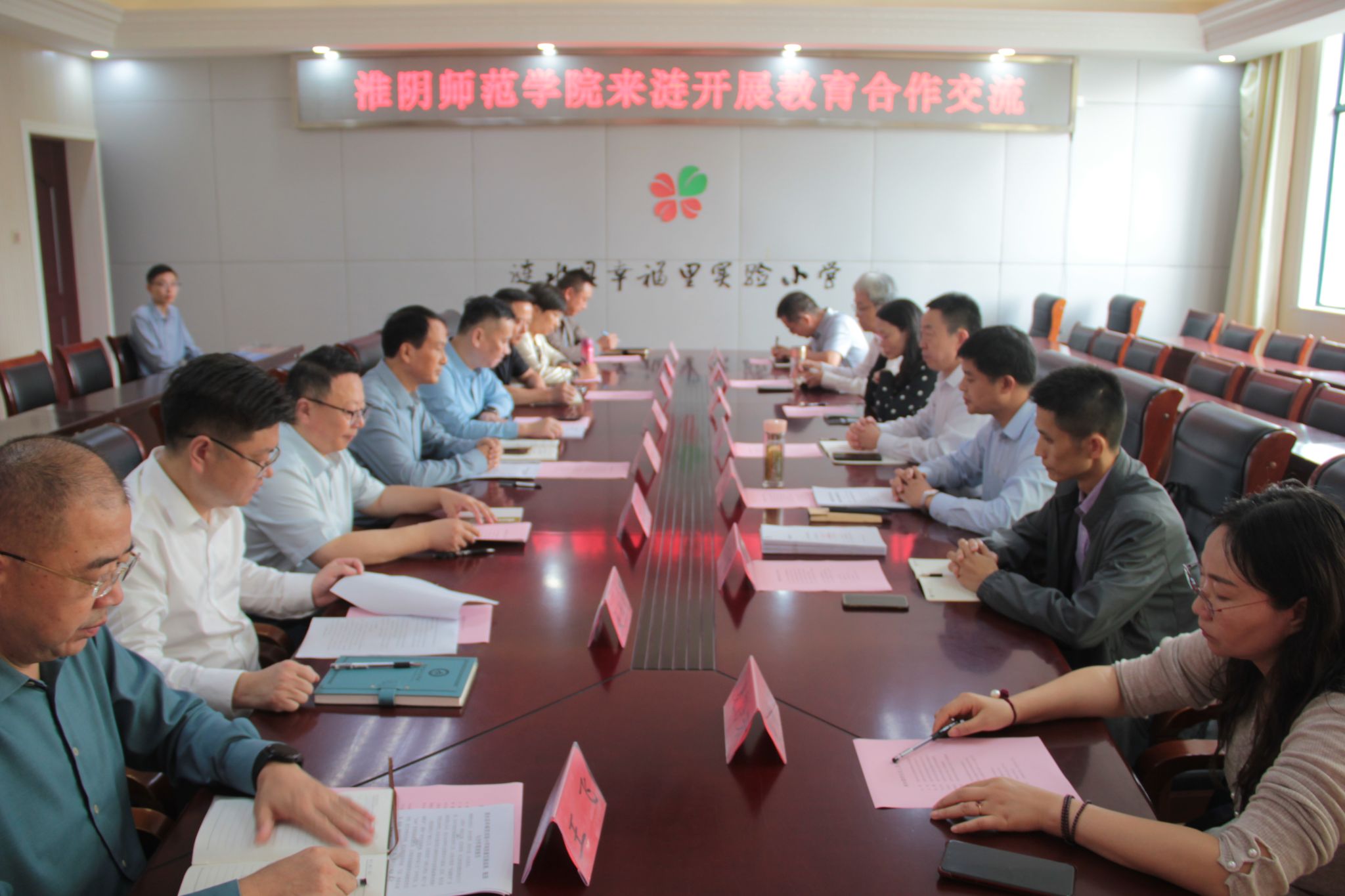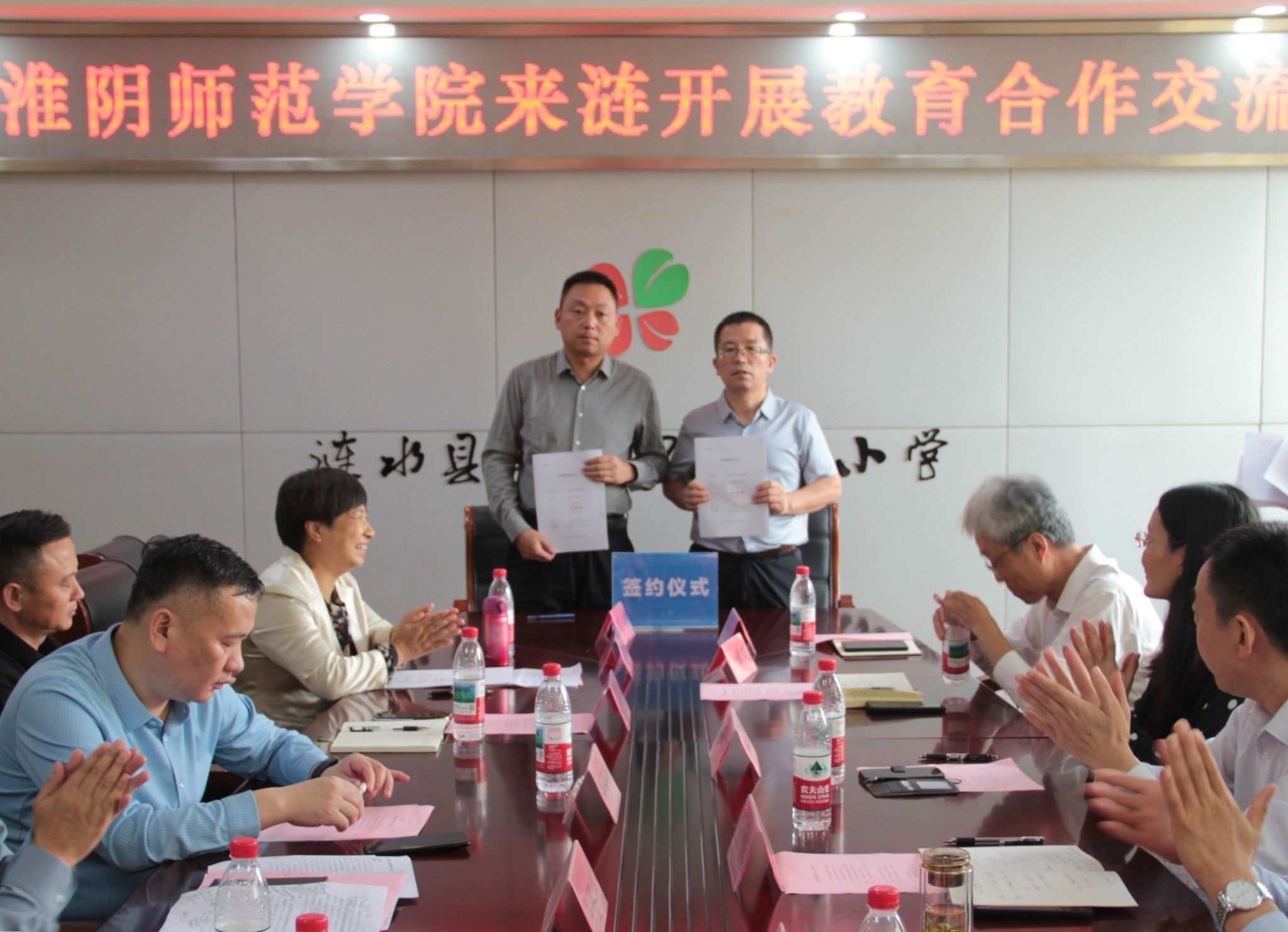 9月29日上午,淮阴师范学院与涟水县高品质学校建设项目合作交流会在涟水县幸福里实验小学召开,淮师选派的五位高品质学校建设项目负责教师分别与涟水县对接学校签订了工作协议。教师教育学院院长史晖,对外合作处处长王钢,教师教育学院副院长朱守信,以及涟水县高品质学校建设项目负责教师参加活动。涟水县教育体育局副局长朱金峰,教育科科长王怀益,涟水县教师发展中心办公室主任徐瑞,以及涟水县相关高品质学校建设单位负责人出席。
