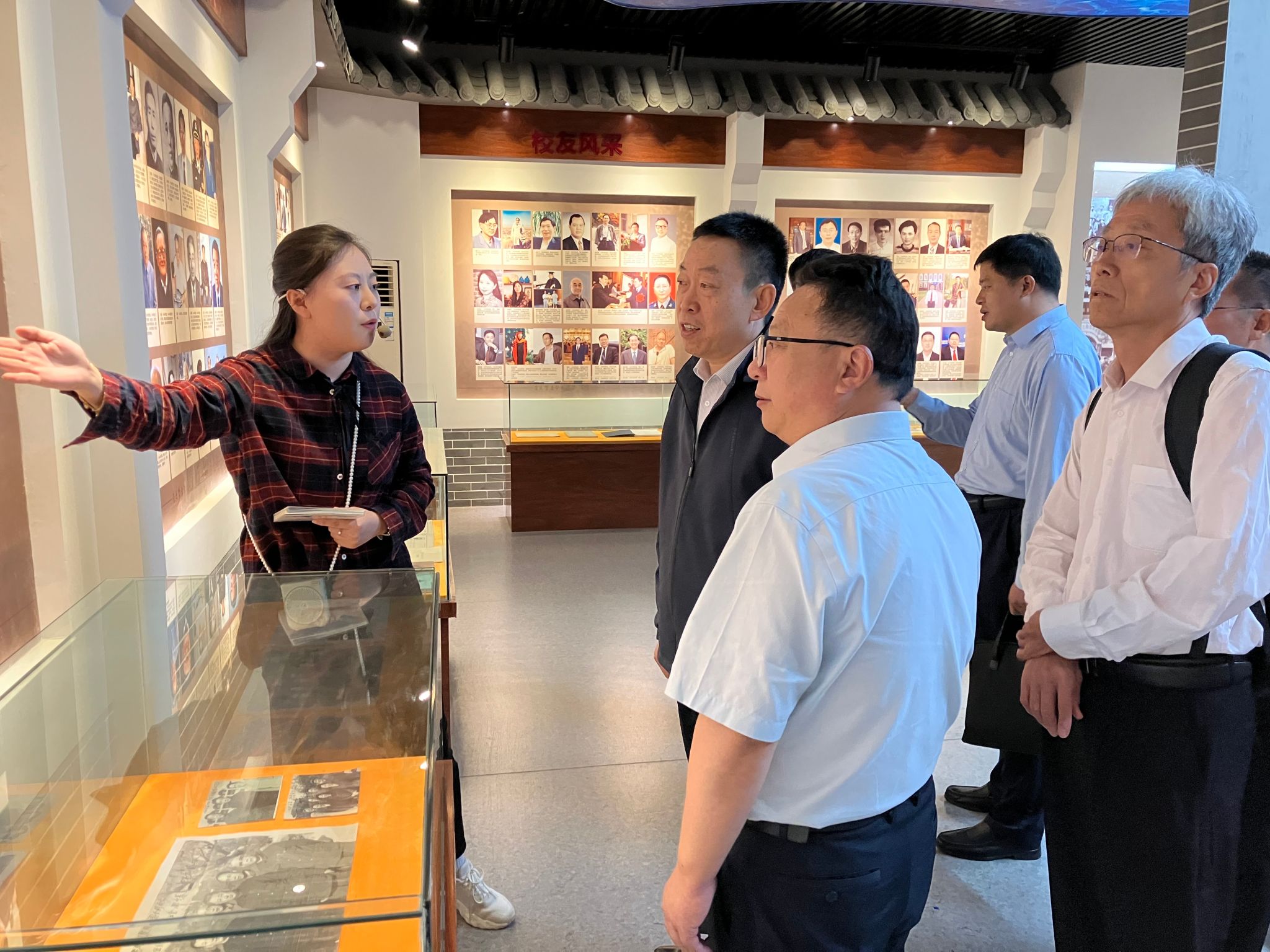 图为淮师一行参观江苏省涟水中学办学展览馆