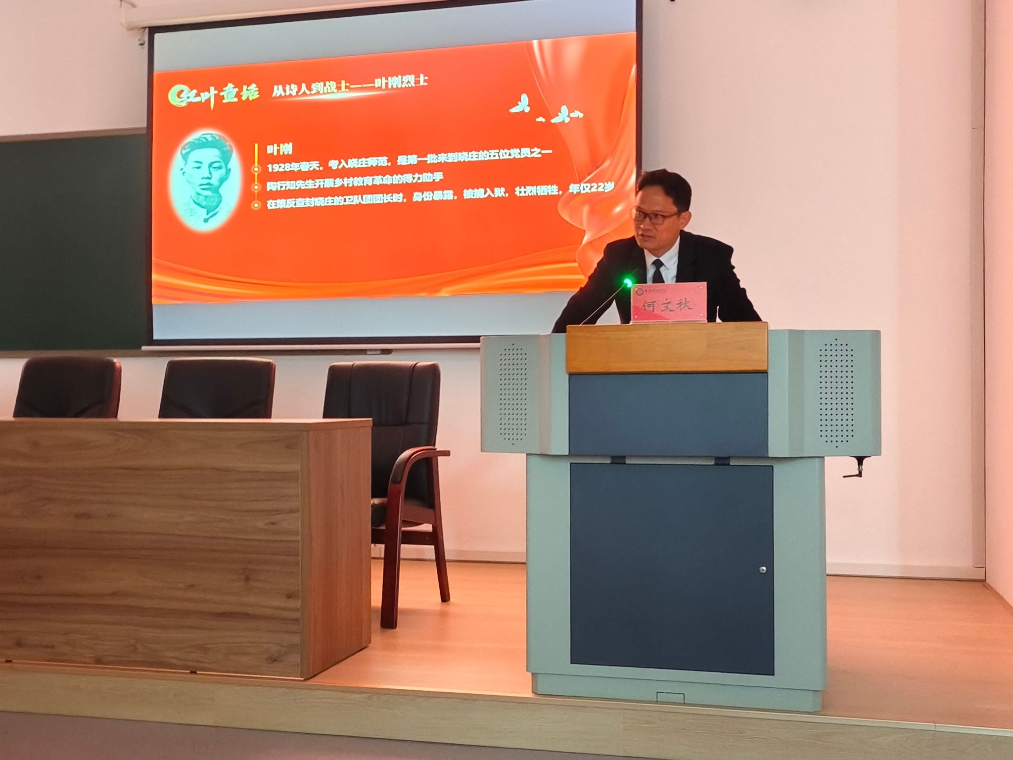 从踏进南京晓庄学院行知园的那一刻,便开启了一场穿越百年的教育思想溯源之旅。作为中国近代教育史上的伟大先驱,陶行知先生毕生致力于教育改革与乡村师范教育,提出“生活即教育、社会即学校、教学做合一”的教育理念,用一生践行“捧着一颗心来,不带半根草去”的崇高誓言,为中国现代教育留下了宝贵精神财富。南京晓庄学院陶行知纪念馆馆长何文秋以《信仰——一场穿越百年的行知实践》为主题,为全体师生讲授了一堂树立和践行正确政绩观的专题党课,结合晓庄师范的创办历史与革命传统,深情讲述了晓庄十英烈的英勇事迹,介绍了袁咨桐、叶刚、郭凤韶、徐明清等一批怀抱教育理想的青年志士,在国家危亡、民族危难之际,坚守信仰、不畏牺牲,为人民解放与教育事业英勇献身的感人事迹。何文秋指出,晓庄师范从诞生之初就流淌着红色血脉,承载着教育救国、教育为民的初心使命。陶行知先生不仅是伟大的教育家,更是一位坚定的爱国者、革命者,他所倡导的教育理念,始终与国家前途、民族命运、人民需求紧密相连。他鼓励同学们要从百年行知实践中读懂信仰的力量,树立正确的教育观、教师观、政绩观,把个人理想融入国家发展大局,把青春热血书写在三尺讲台。